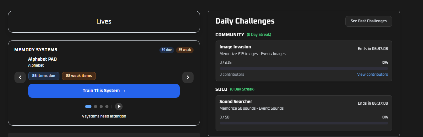 Once you’ve built your custom system, it trains exactly like everything else on BlitzMemory. You get all the same training modes, the same spaced repetition, the same stats — heat maps, performance graphs, accuracy over time, all of it. There’s no difference in how it’s treated.