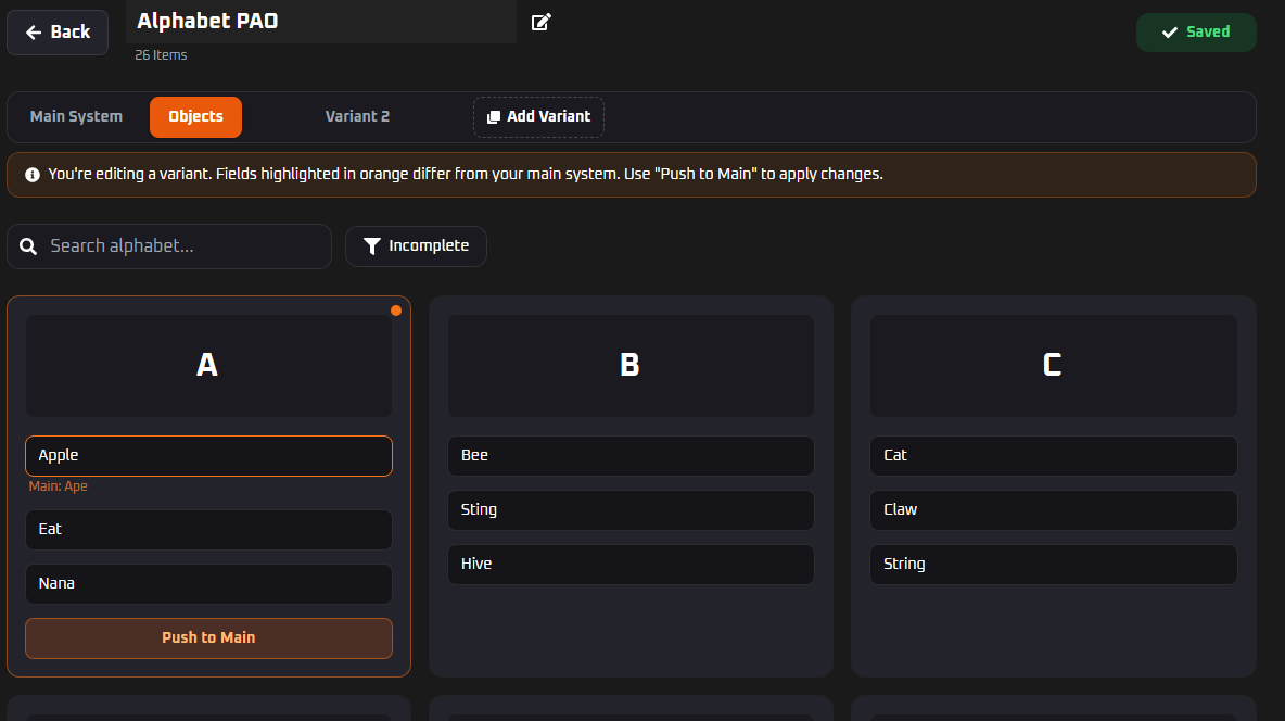 If you try something in a variation and love it, you can push those changes directly into your main system. If it doesn’t work, no harm done. You will also know what images are different in the variations compared to the main images.