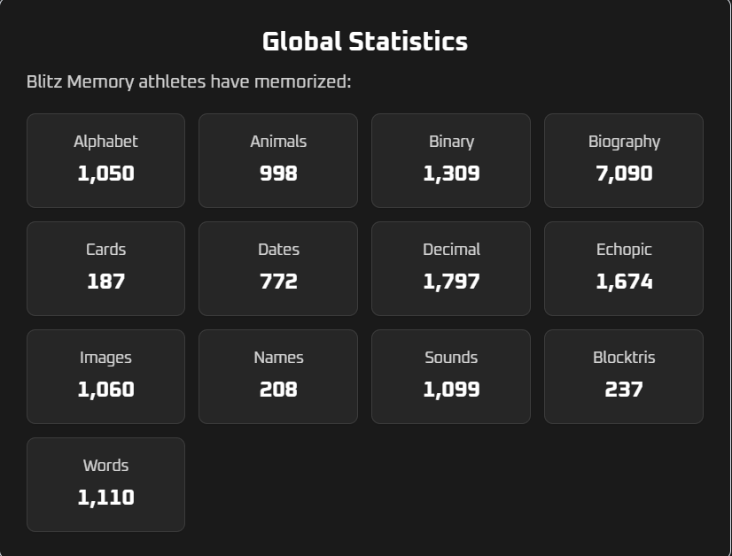 Every wonder how many cards, numbers, names, and all other data that has been memorized on Blitz Memory?